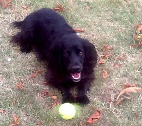 A delighted Poppy with her new ball - courtesy of our current guests. She is a very happy dog!