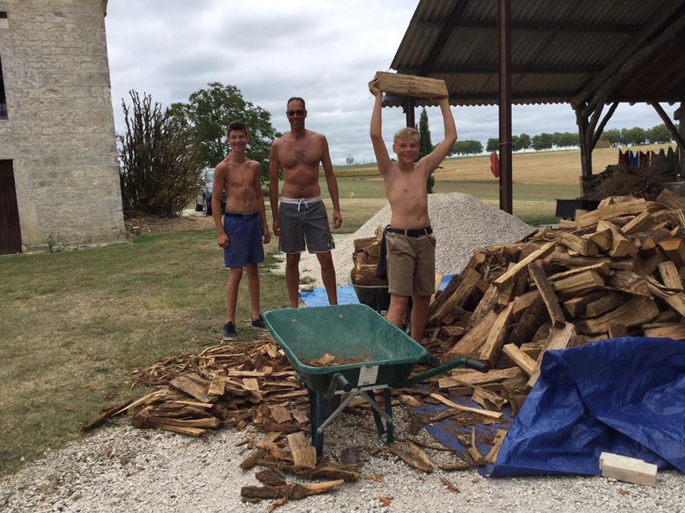 Our guests very kindly volunteered to help us move the huge pile of logs just delivered. At least they were rewarded with a beer or two and our heartfelt thanks!
